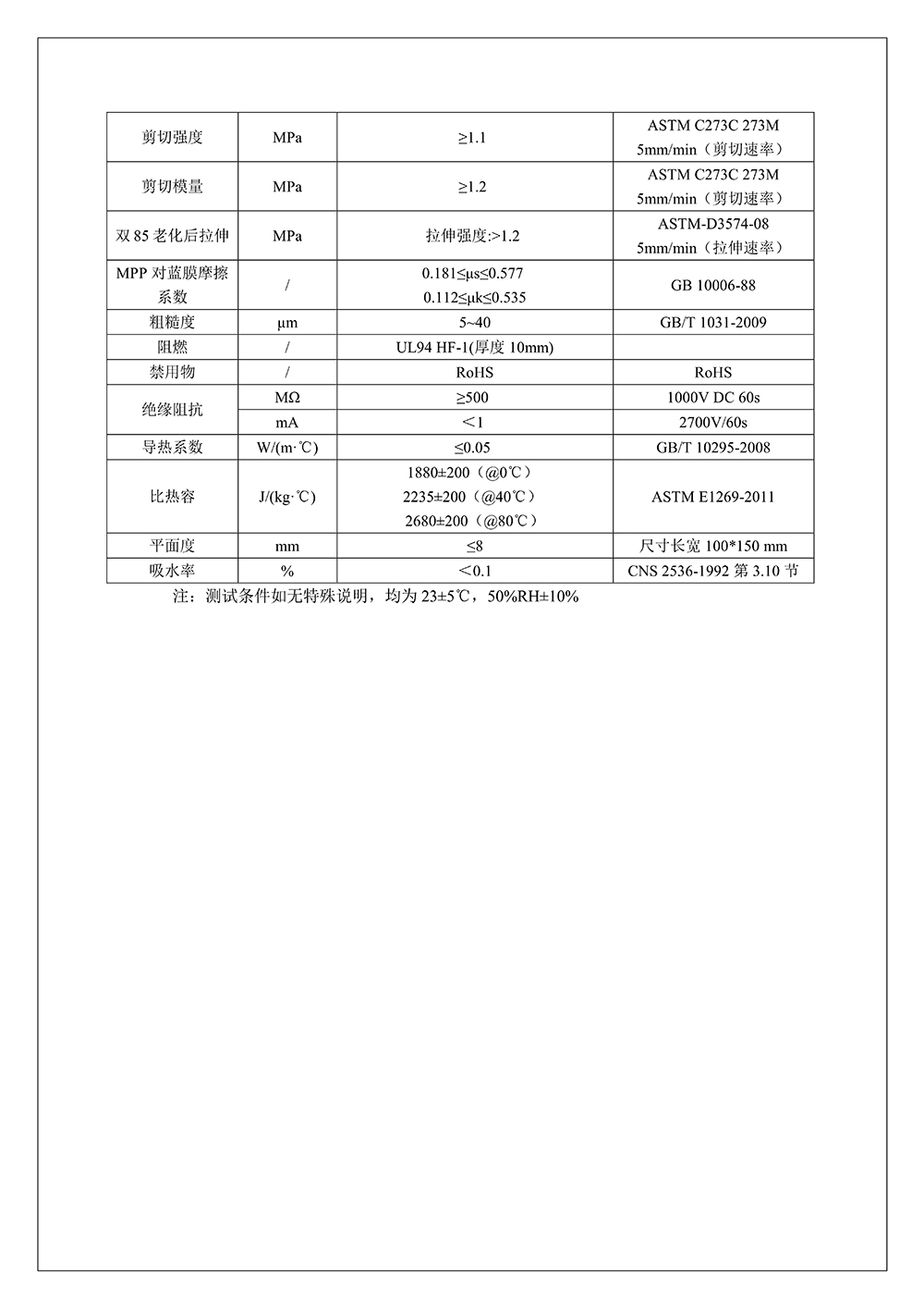聚丙烯微孔發泡MPP產品規格書